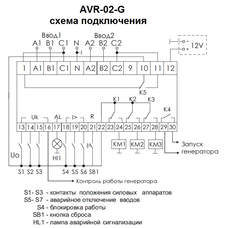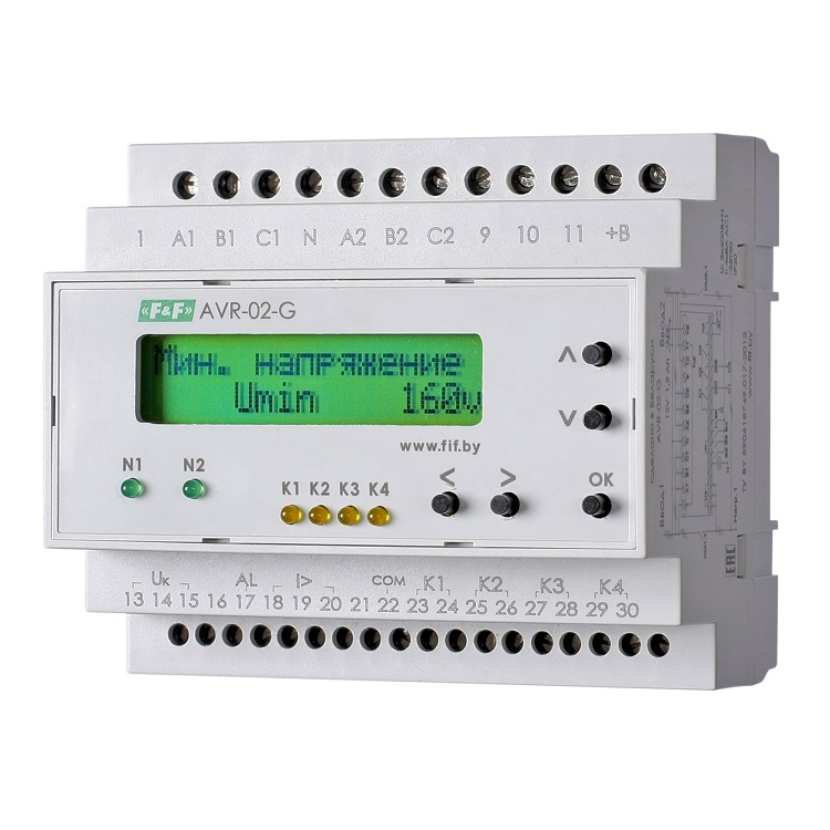Устройство управления AVR-02-G предназначено для построения блоков АВР с двумя вводами питания (двумя сетевыми вводами или сетевой ввод и ввод от генератора), с секционным выключателем, с одной или двумя нагрузками.