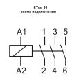 Подача управляющего напряжения на катушку контактора, приводит к переключению контактов. Положение контактов сигнализируется свечением красного светодиода. После отключения напряжения питания, контакты возвращаются в первоначальное положение.
