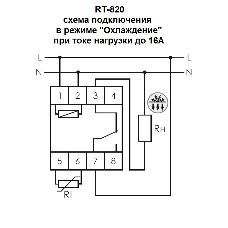 При увеличении температуры в зоне температурного контроля, превышающем установленное значение на терморегуляторе, контакты исполнительного реле замкнуты, оборудование охлаждения (вентилятор, кондиционер) включено. При достижении установленного значения температуры регулятор температуры отключает оборудование охлаждения. При повышении температуры на величину установленного гистерезиса контакты исполнительного реле замыкаются, оборудование вновь включено.