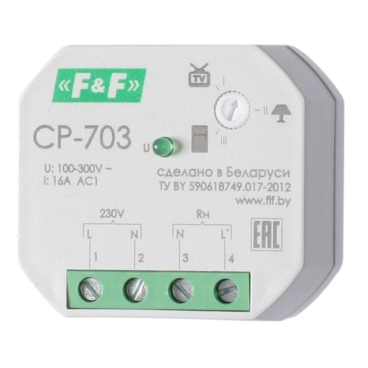 Напряжение питания 100-300 В, контакт 1NO, 16 А, скрытая установка в монтажную коробку, подрозетник.