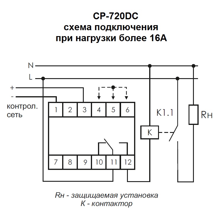 Реле контроля напряжения CP-720 DC предназначено для непрерывного контроля величины напряжения в однофазной сети постоянного тока и защиты электроустановок, электроприборов и прочего электронного оборудования от повышенного или пониженного напряжения питания, контроля напряжения в системах автоматики. Защита осуществляется путем отключения нагрузки от сети питания.