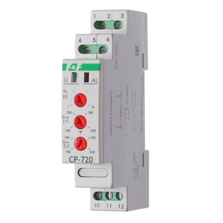 Реле контроля напряжения CP-720 предназначено для защиты однофазных электроустановок, электроприборов и прочего электронного оборудования от повышенного или пониженного напряжения.
