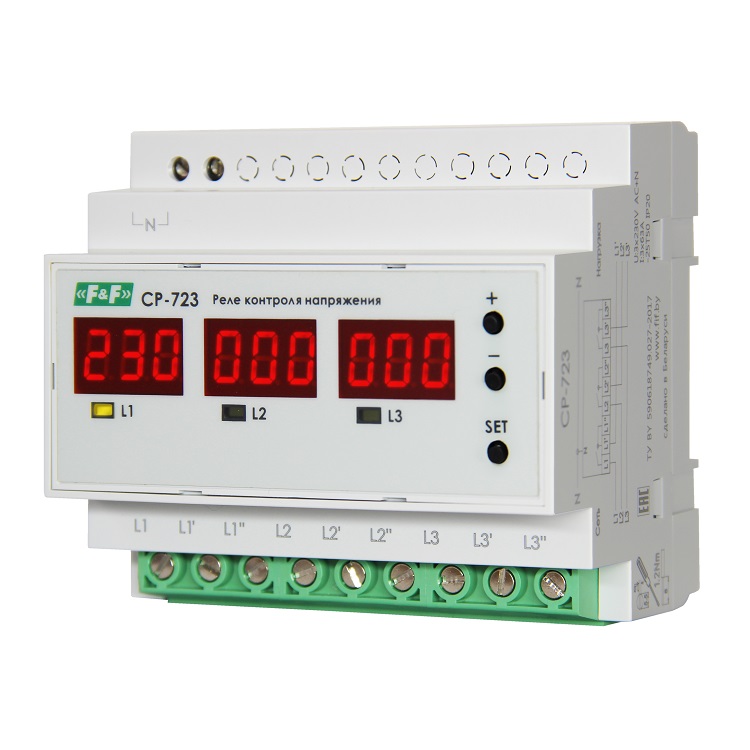 Реле контроля напряжения CP-723 предназначено для защиты однофазных и/или трехфазных электроустановок, электроприборов и прочего электронного оборудования от повышенного или пониженного напряжения.