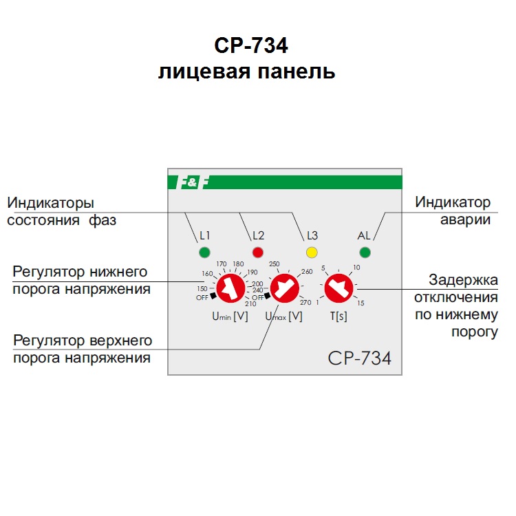 При установке потенциометра в положение «OFF» отключение реле по соответствующему порогу производится не будет. Реле имеет 3 независимых выхода для каждой фазы.