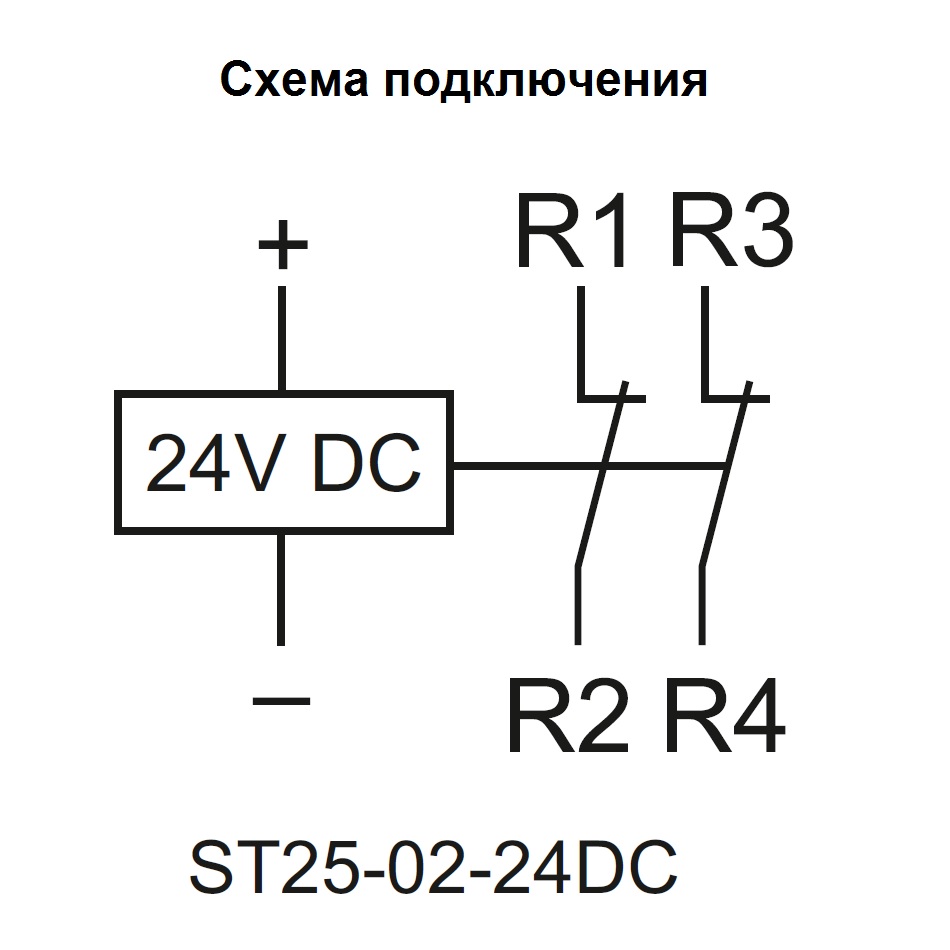 Напряжение питания — 24 В, DC. Максимальный ток нагрузки — 25 А Контакты 2NC.