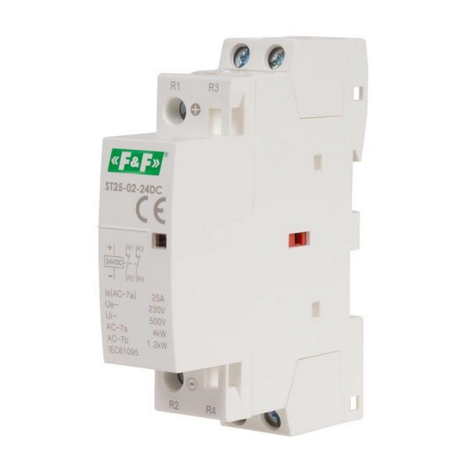 Напряжение питания — 24 В, DC. Максимальный ток нагрузки — 25 А Контакты 2NC.
