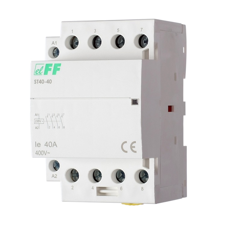 Напряжение питания — 230 В, 50 Гц. Максимальный ток нагрузки — 40 А Контакты 4NO.