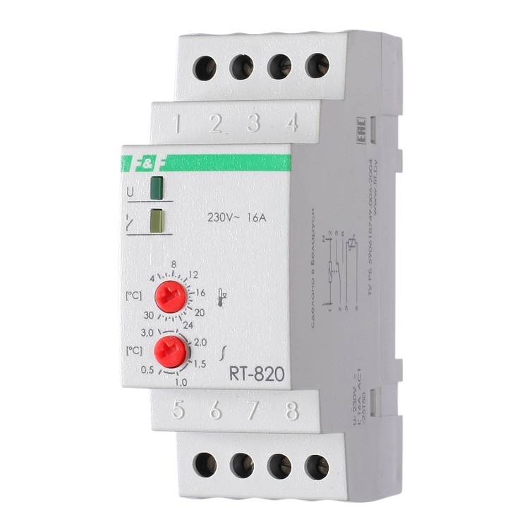 Напряжение питания 50-264 В АС/DC, Диапазон от +4 до +30 гр., Контакт 1NO/NC, 16 А.