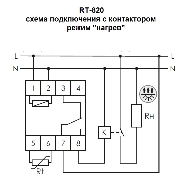 При понижении температуры в зоне температурного контроля ниже значения, установленного на терморегуляторе, контакты исполнительного реле замкнуты, нагревательное оборудование включено. При достижении установленного значения температуры регулятор температуры отключает нагревательную установку. При снижении температуры на величину установленного гистерезиса контакты исполнительного реле замыкаются, нагревательное оборудование вновь включено.