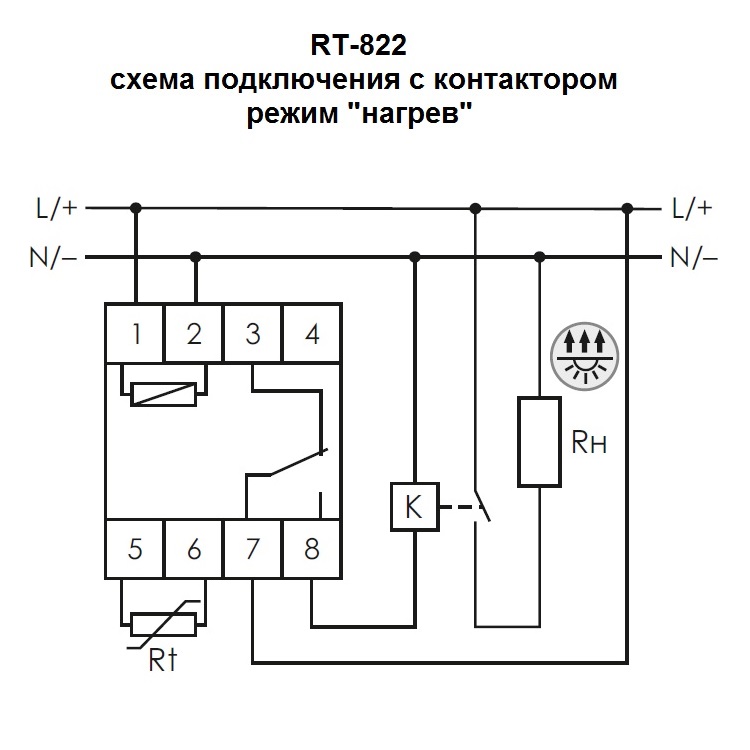 При понижении температуры в зоне температурного контроля ниже значения, установленного на терморегуляторе, контакты исполнительного реле замкнуты, нагревательное оборудование включено. При достижении установленного значения температуры регулятор температуры отключает нагревательную установку. При снижении температуры на величину установленного гистерезиса контакты исполнительного реле замыкаются, нагревательное оборудование вновь включено.