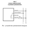 Уровень влажности воздуха задаётся потенциометром. Влажность измеряется встроенным цифровым датчиком. Если влажность выше установленного значения, замыкаются контакты исполнительного реле, включается осушитель воздуха (подключен к синему и желтому проводам). При снижении уровня влажности контакты реле переключаются (замыкаются контакты, подключенные к синему и черному проводам). Реле влажности может работать в режиме осушения воздуха или в режиме увлажнения воздуха.