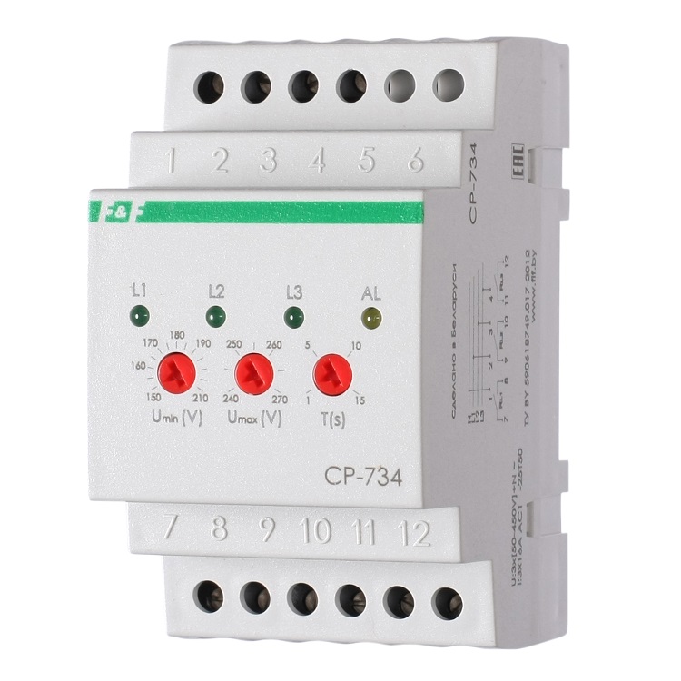 Нижний предел 150-210 В, Верхний предел 240-270 В, отдельный контакт на каждую фазу, контакт 3NO, 3х16 А.