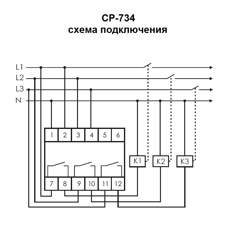 При установке потенциометра в положение «OFF» отключение реле по соответствующему порогу производится не будет. Реле имеет 3 независимых выхода для каждой фазы.